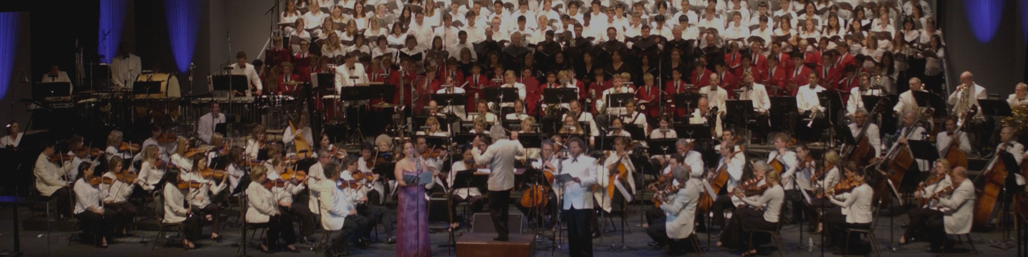 soprano and baritone soloists, mixed chorus, children’s chorus, orchestra (joined by massed children’s choirs if available)